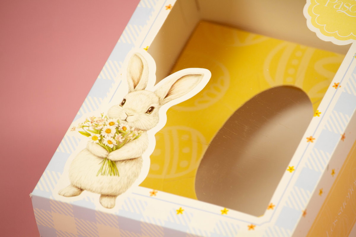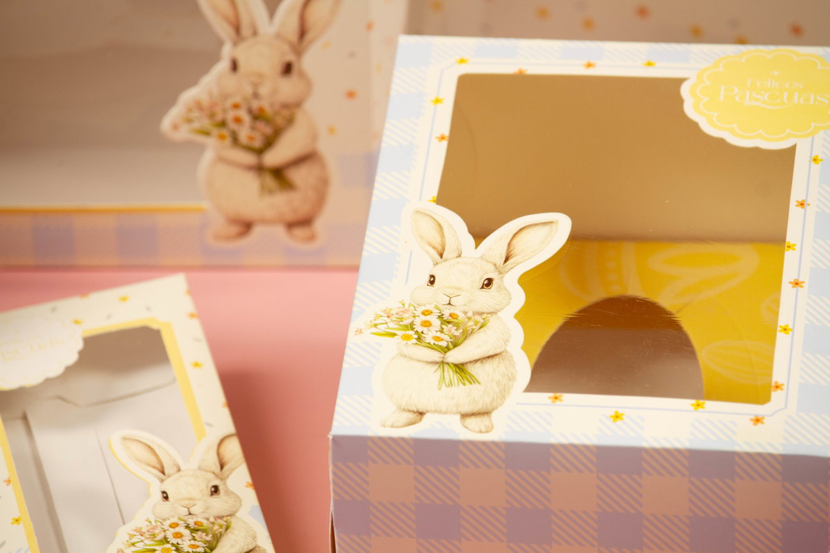 Esta caja de Pascua combina un estilo pastel súper delicado con un formato premium de zócalo + tapa, ideal para pasteleras que buscan una presentación diferente, fina y memorable ✨