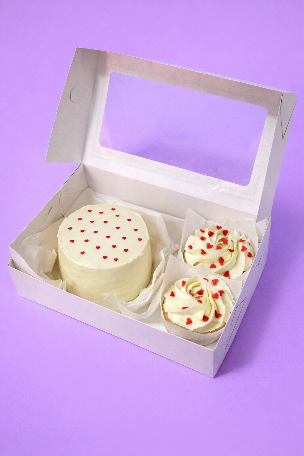 incluye un zocalo unido para 2 cupcakes (o shots) + un apoyo para una bento cakes de hasta 14 cm de diametro